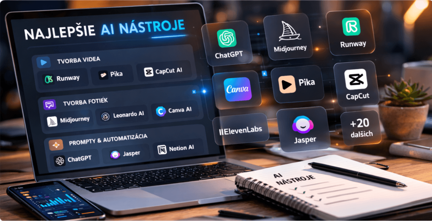 Dostaneš prehľad najpoužívanejších AI aplikácií, platforiem a nástrojov, ktoré dnes používajú tvorcovia, marketéri a online podnikatelia.